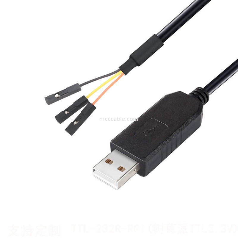 TTTL-232R-RPiケーブルは,USBから非同期シリアルデータ転送経路をサポートできる